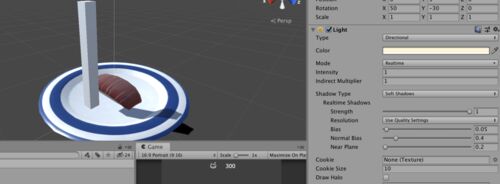 現象 対処方法 現象 オブジェクトが小さい?と近い影が出ない状況が発生しました。 皿の上に柱と寿司を置いているのですが、 柱の影は離れて表示、寿司の影が出ない状態。 この時の寿司の大きさは 0.3(m)とか。 ピーター パニング(ピーターパン現象)と呼ぶ…